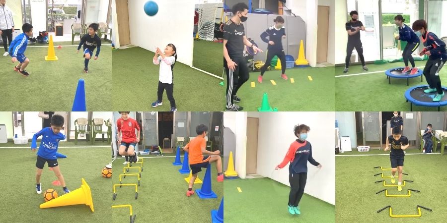 - 体をリズム感よく正確に動かすコーディネーション能力(運動神経)と素早く動かすためのSAQ(スピード・アジリティ・クイックネス)を伸ばすためのトレーニング。